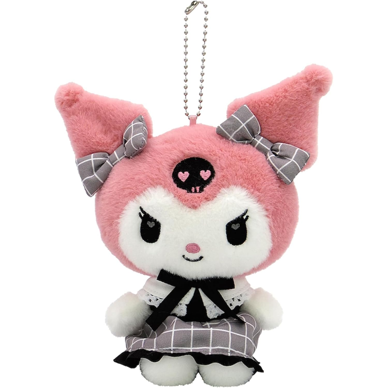 Deze Kuromi Black Graph plush hanger straalt pure cuteness uit. Kuromi draagt een zwart-grijze outfit met ruitpatroon.