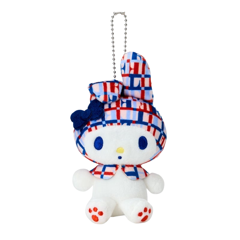 Het zachte pluche is uitgevoerd in een rood-blauw geruite outfit waarin subtiel de letters ELLE zijn verwerkt, compleet met bijpassende cape en strik. Hierdoor krijgt My Melody een elegante en modieuze uitstraling die perfect past bij de samenwerking met het iconische modemagazine.