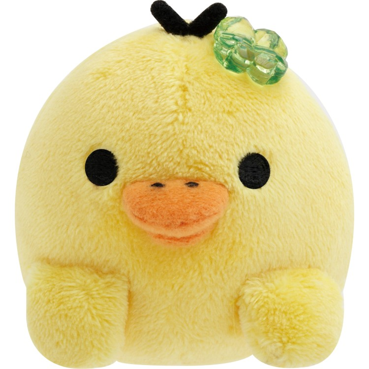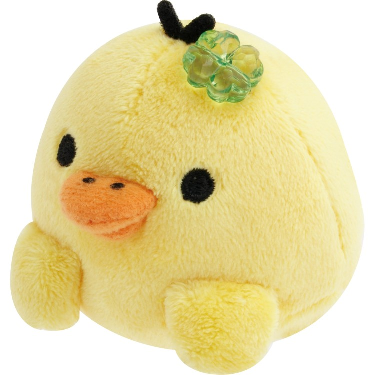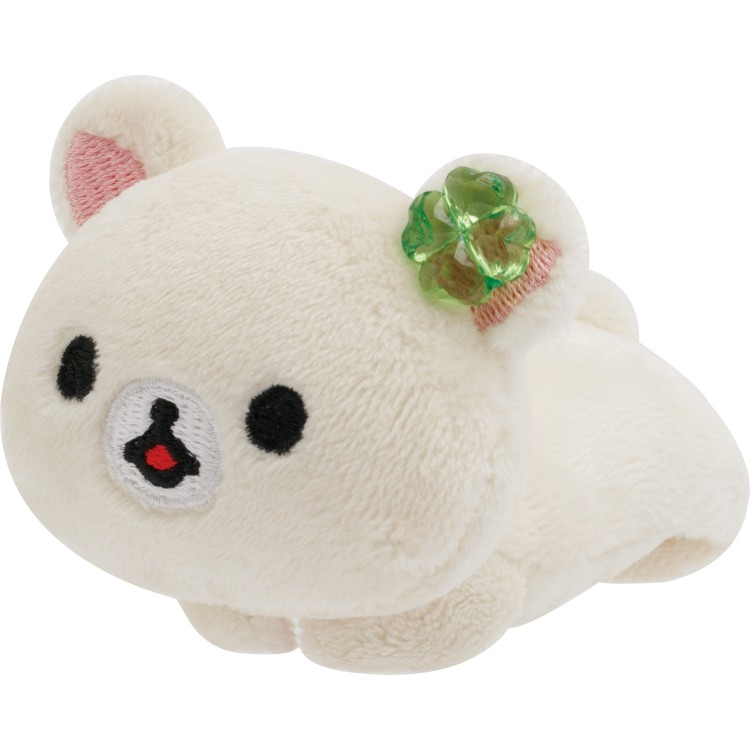 I went for the lying-down Rilakkuma with a clover leaf on its ear. Cute pose, and that little clover leaf on its ear is just adorable! The size fits perfectly on my nightstand, where it now sits alongside my other stuffed animals.