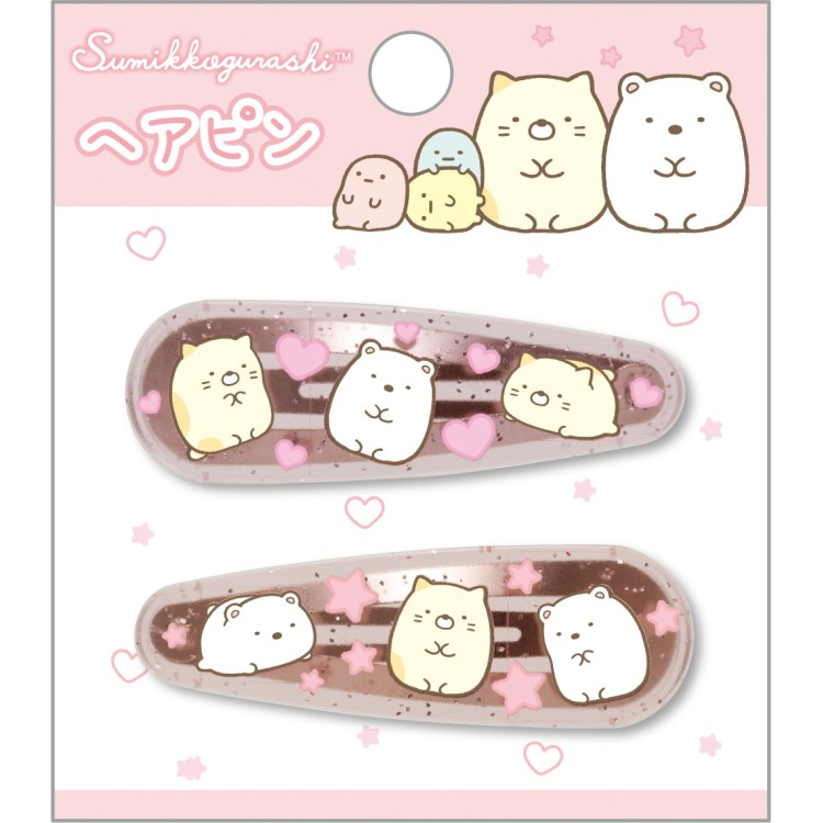 You'll receive a set of two hairclips: one with hearts and one with stars, but both feature Neko and Shirokuma. So cute!