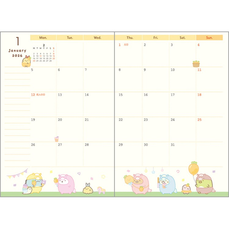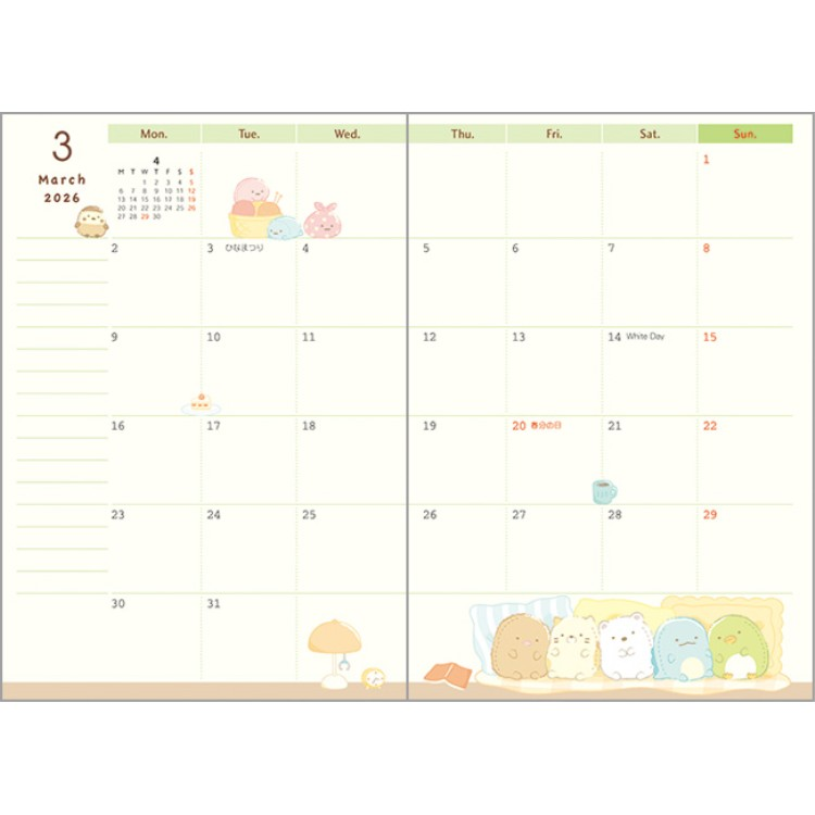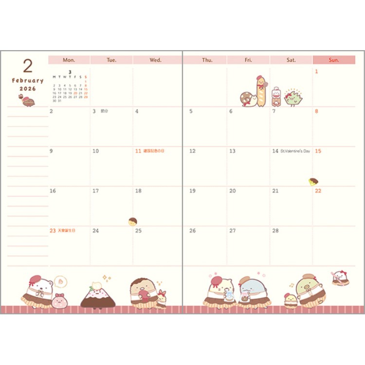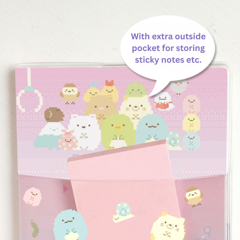The size fits perfectly in my bag. The small calendar has a cover with an extra pocket around it. The motif is really pretty, and the motifs on each page inside are really cute too. The checkered and lined pages at the back are handy for addresses or phone numbers. There's also plenty of room for notes. Lovely calendar!