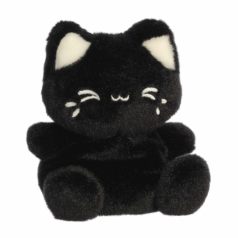 Kawaii Palm Pals Tasty Peach Black Sesame Meowchi knuffel van ongeveer 13 cm. Dit Palm Pals knuffeltje voelt heerlijk zacht aan en is gevuld met bonen.